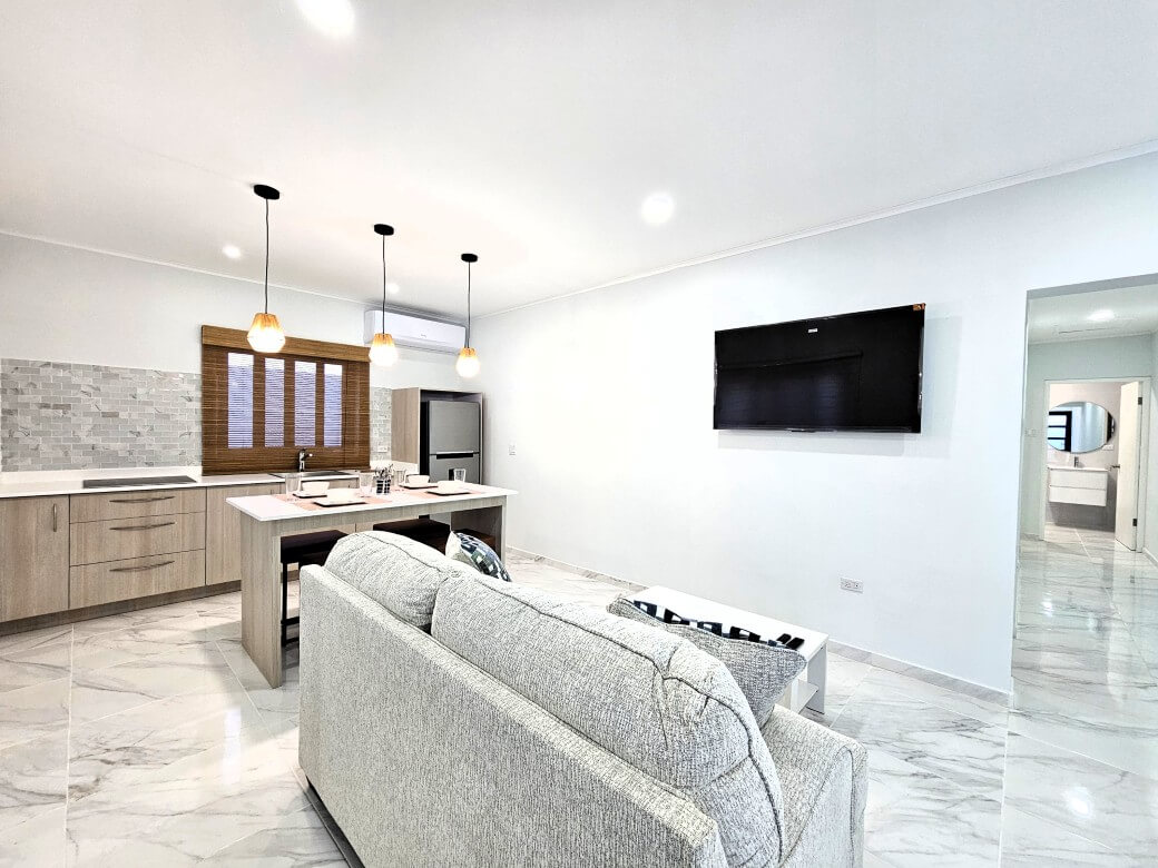 This newly build modern 2-bedroom apartment is located in the neighborhood of Cunucu Abao, Noord, which is only a 5-minute drive to the beach, and close to the main road Sasaki. Ideal for a small family or a couple working around the Noord Area.