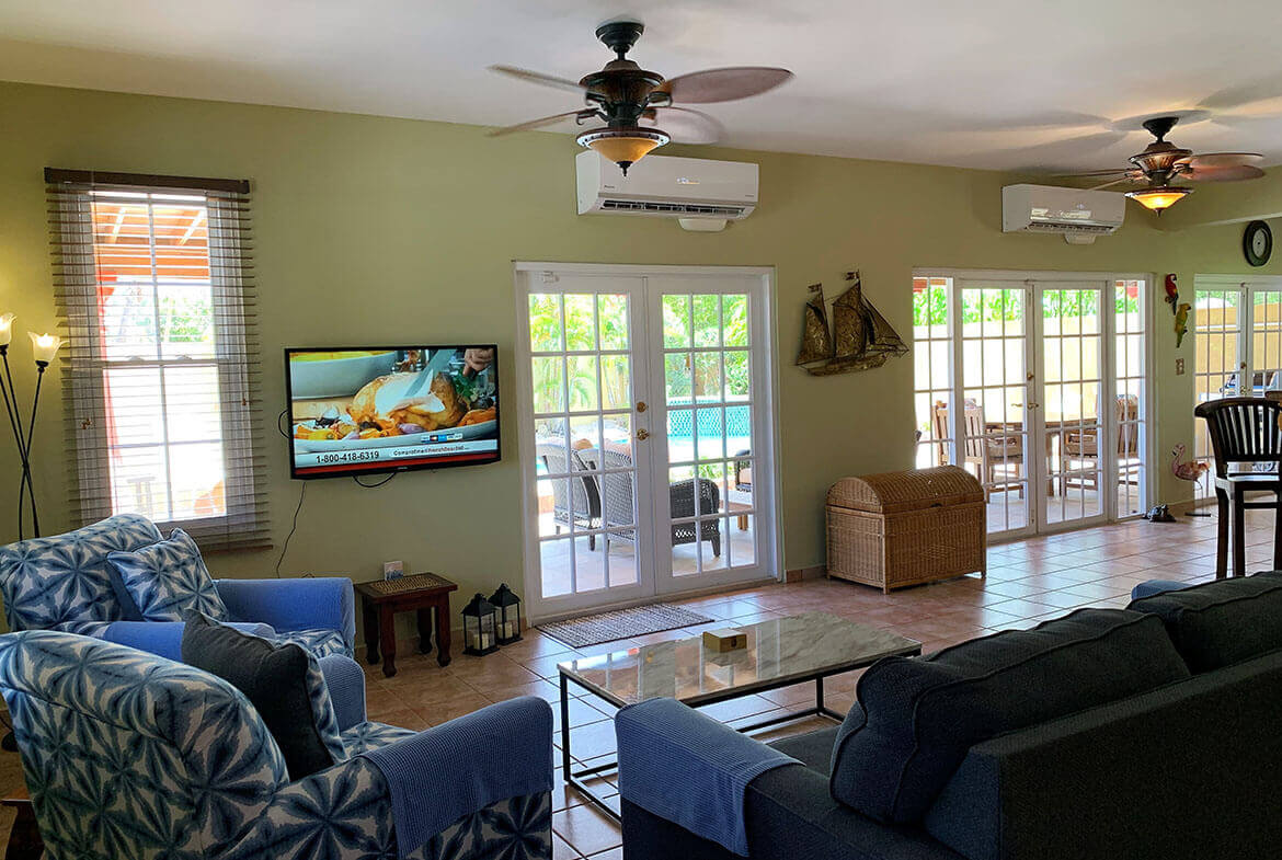 Paradise, in its true sense, is this ever-so-breathtaking villa that is in a posh gated community. The lovers of luxury and tropical bliss must choose this property as it has everything you need in your accommodation in Aruba. Even the outdoor and indoor area of the house is quite spacious. The private pool is alluring, along with lounge chairs and shaded areas to sit and relax with your friends and family. There is a total of three bedrooms, three beds, and three bathrooms which have all the amenities. Even the living and kitchen area has all the facilities for the perfect living experience.